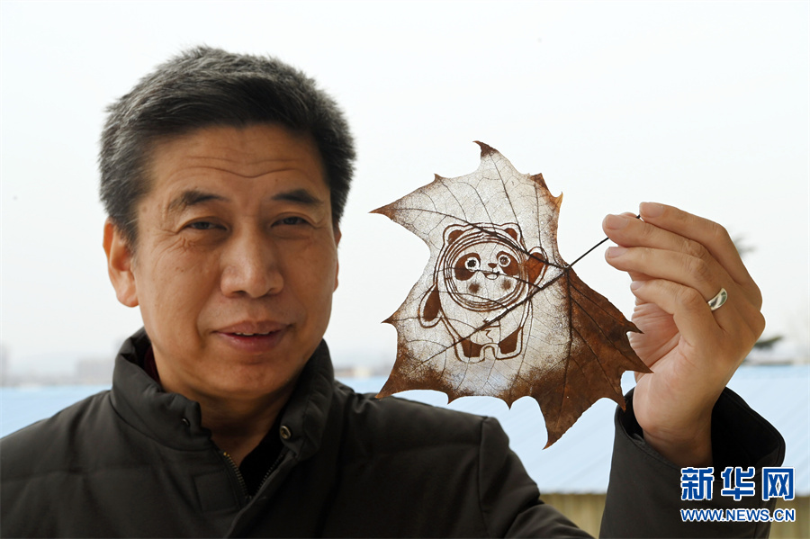 Chen Liming, a leaf carving master in Jiaozuo city, central China’s Henan Province, created leaf carving works with the theme of the Beijing 2022 Olympic Winter Games to show his support for the mega sporting event.