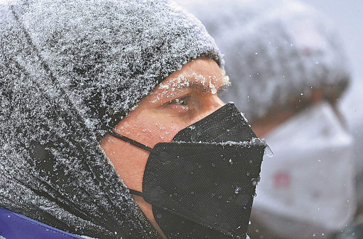 Members of the sports teams wait for the rescheduling of the freeski women's aerials qualification event at Genting Snow Park in Zhangjiakou, Hebei province, on Feb 13. WEI XIAOHAO/CHINA DAILY