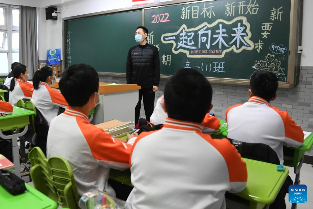 Students attend a class in the High School Affiliated to China Agricultural University in Beijing, capital of China, Feb. 21, 2022.
