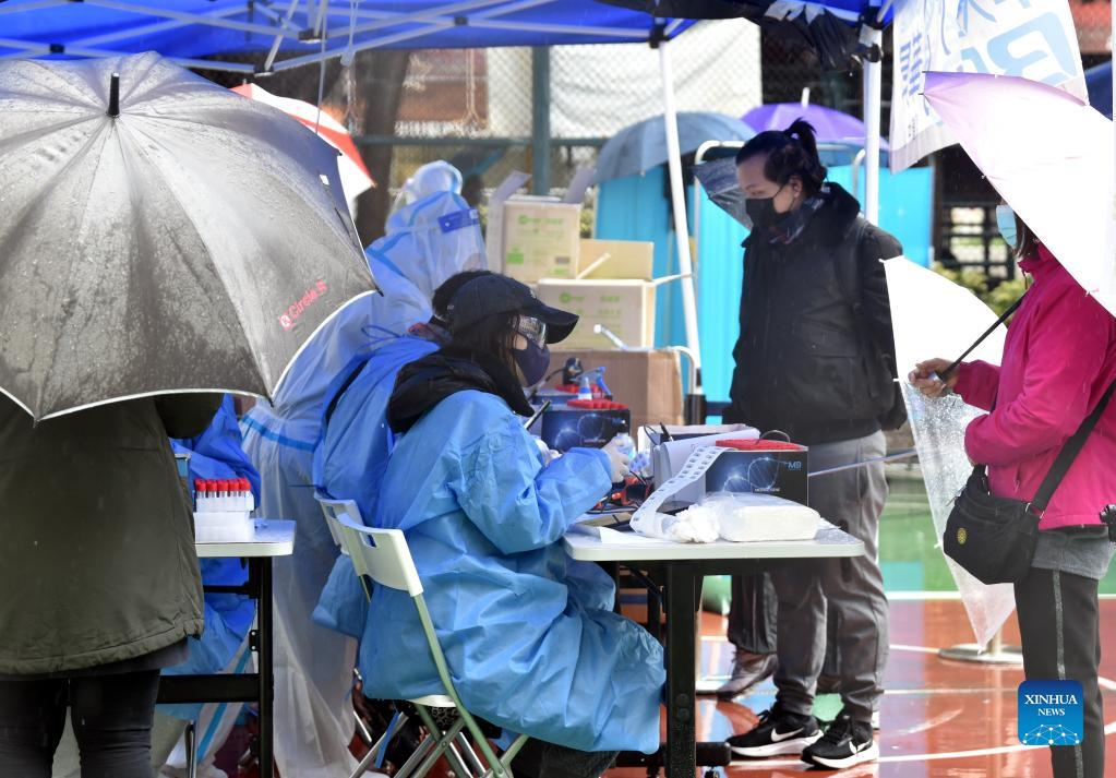 HONG KONG, Feb. 21 (Xinhua) -- Over 100 nucleic acid test members of a medical support team from the Chinese mainland on Monday began offering sampling services in Hong Kong, boosting the speed of tracking COVID-19 cases.