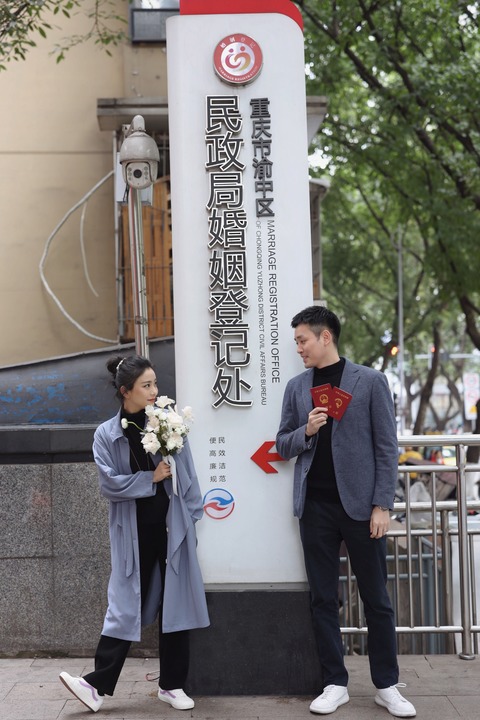 At about 9 a.m., Jiang Shaoxin and Wang Yi arrived at the Registry of Marriages in Yuzhong District, southwest China's Chongqing Municipality.