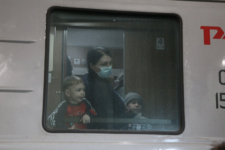 Refugees from eastern Ukraine arrive at a train station in Nizhny Novgorod, Russia, Feb. 22, 2022. (Photo by Roman Yarovitcin/Xinhua)