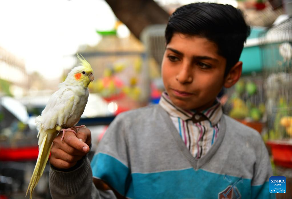 Pet birds are sold at a market in Damascus, Syria, Feb. 22, 2022. (Photo by Ammar Safarjalani/Xinhua)