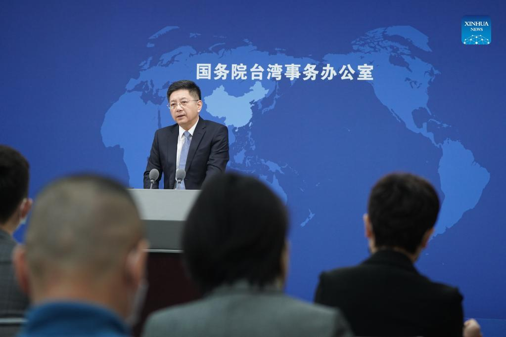 Ma Xiaoguang, spokesperson for the Taiwan Affairs Office of the State Council, attends a press conference in Beijing, capital of China, Feb. 23, 2022. (Xinhua/Chen Yehua)