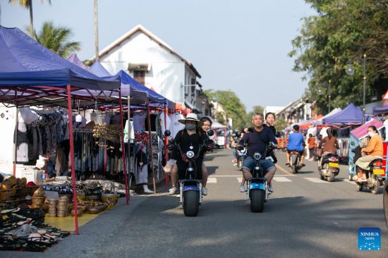 Photo taken on Feb. 25, 2022 shows a view of the ancient town of Luang Prabang, in Laos. The Laos-China Railway was put into operation in December of 2021, which helped reviving the domestic tourism of Laos. At present, the demand of passengers travelling between Vientiane and the ancient capital of Luang Prabang is growing.