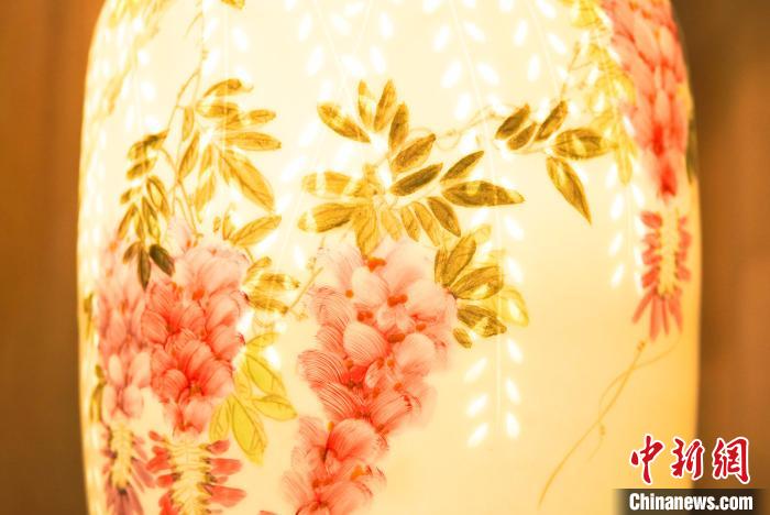 Photo shows a porcelain lamp created by Sun Dena. (Chinanews.com/Wang Haoyang)