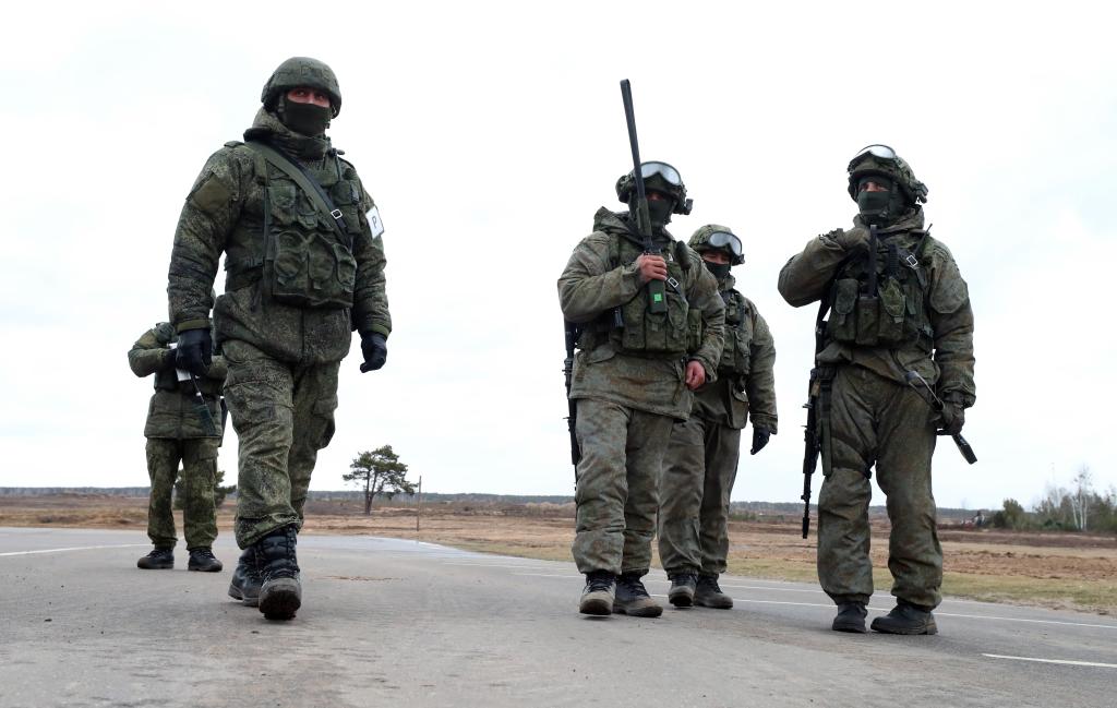 Photo taken on Feb. 19, 2022 shows a view of the Russian-Belarusian exercises, dubbed Allied Resolve 2022, in Belarus. (Photo by Henadz Zhinkov/Xinhua)