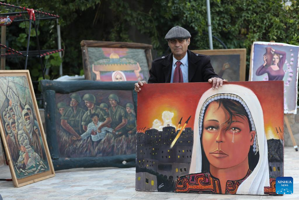 "I like to reflect the spirit of optimism and hope through my painting, to help people find strengths and happiness in their lives," she told Xinhua while painting a mural of a Palestinian woman in an embroidered dress standing in nature.