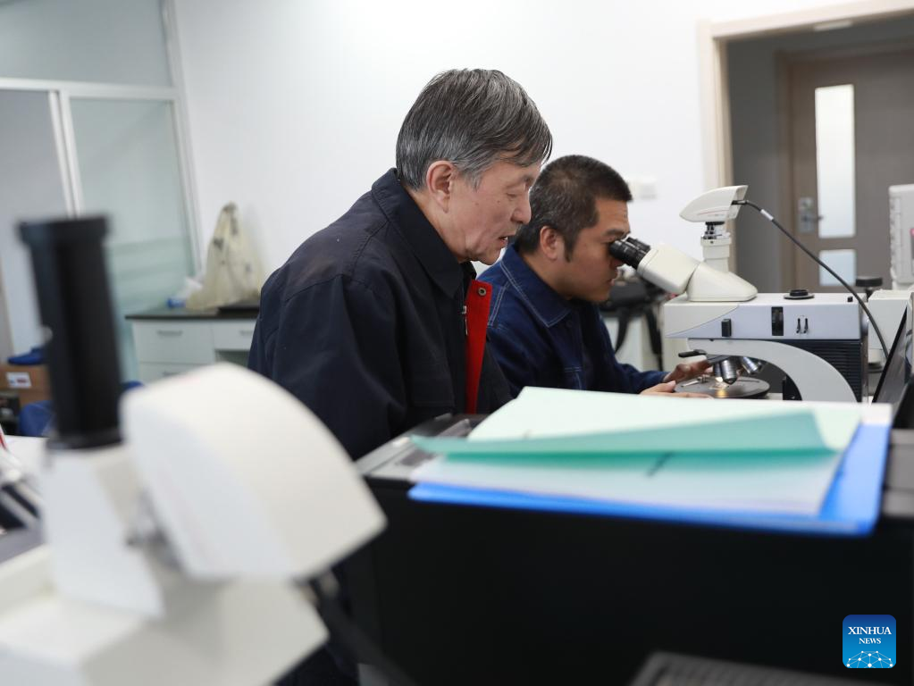 Su Bomin works at a research laboratory of Dunhuang Academy in Dunhuang, northwest China's Gansu Province, Feb. 23, 2022. Su Bomin, a deputy to the National People's Congress (NPC), also dean of Dunhuang Academy, has been working for three decades in the Mogao Grottoes, a UNESCO World Heritage site in Dunhuang, northwest China's Gansu Province. (Xinhua/Zhang Yujie)