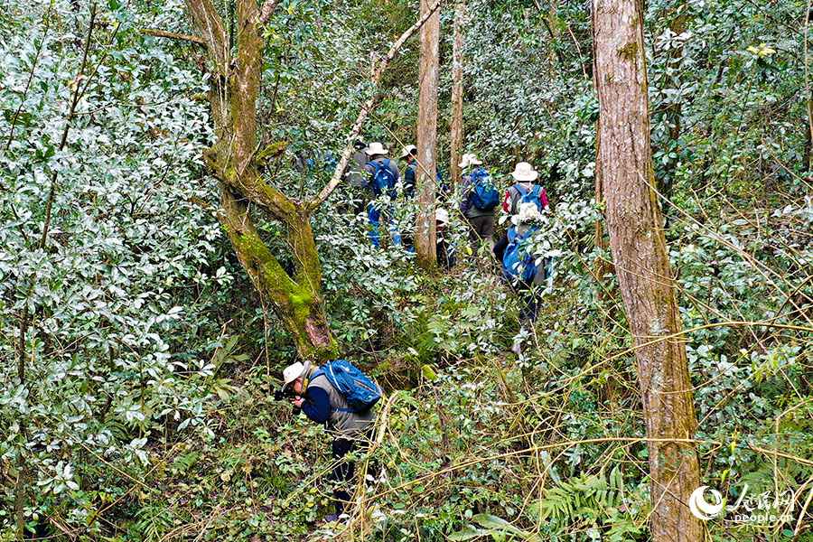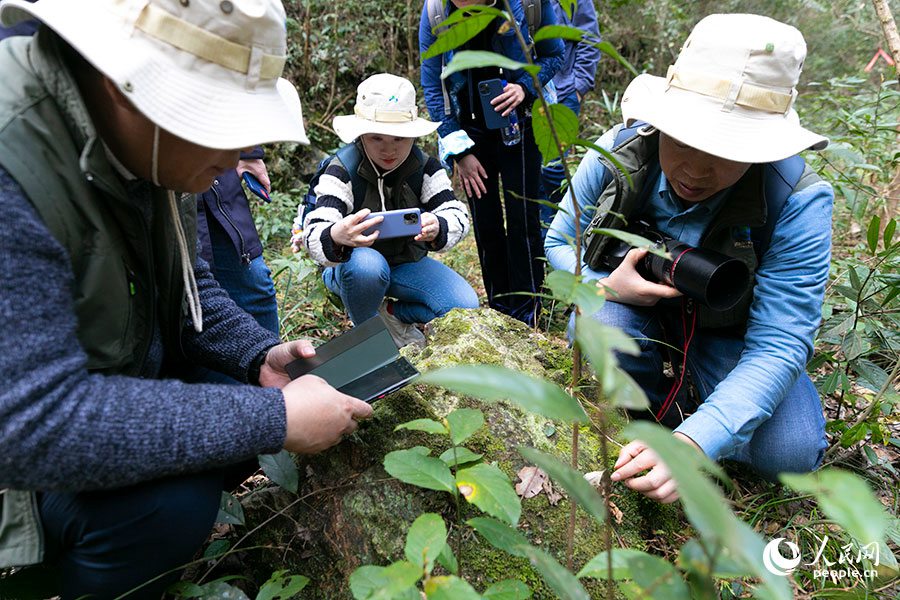 Experts conduct a survey on the forest ecosystem in the western section of the Wuyi Mountain National Park in southeast China’s Fujian Province. (People’s Daily Online/Jiao Yan)