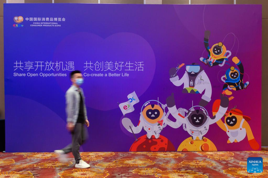 The mascots embody the three dominant and distinctive industries of Hainan, namely the seed industry, deep-sea industry and aerospace industry. Designers have endowed the mascots with diverse personalities, expecting that global enterprises and consumers can share opportunities and create a better life together through the expo, Tulenov said. (Xinhua/Hu Zhixuan)