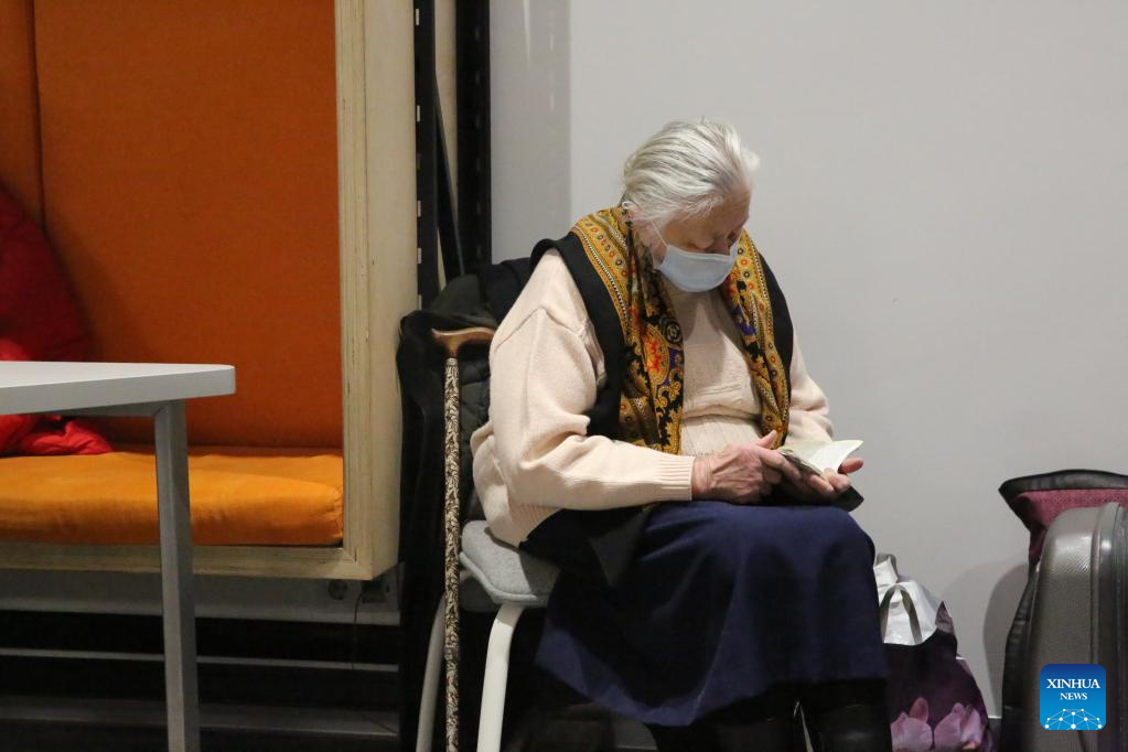 A citizen reads a book in the basement of a university in Lviv, Ukraine, March 1, 2022. (Xinhua/Chen Wenxian)
