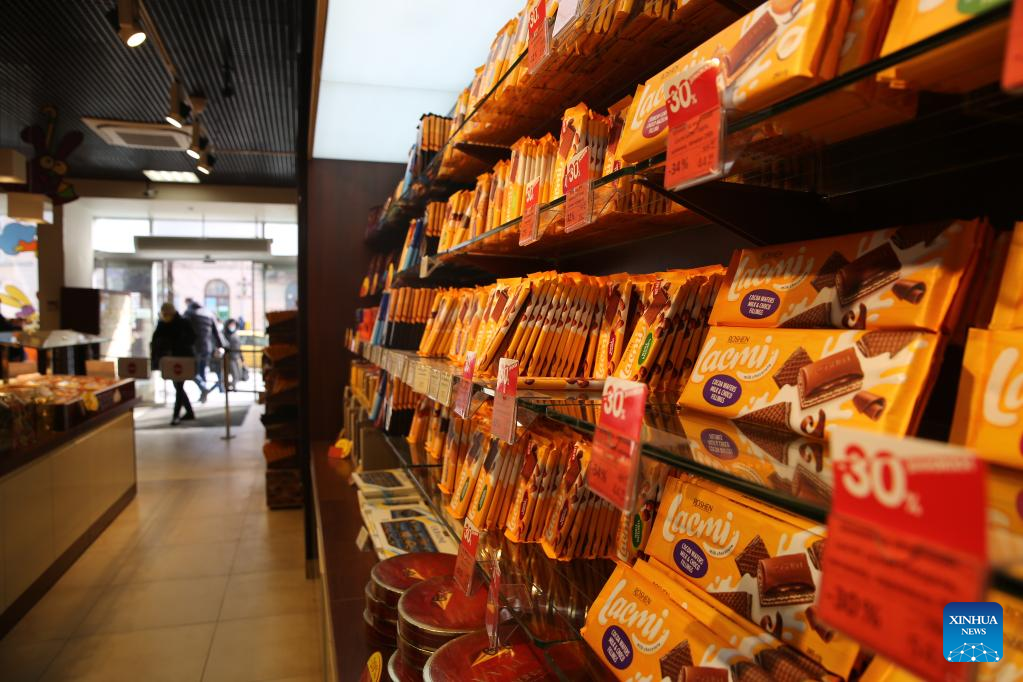 Photo taken on March 1, 2022 shows the interior view of a store in Lviv, Ukraine. (Xinhua/Chen Wenxian)