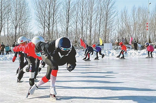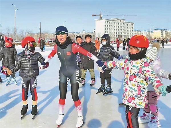 Li Yahui, a national speed skating champion, was recently invited to give a class on speed skating to children in Youyi county, Shuangyashan city, northeast China’s Heilongjiang Province.