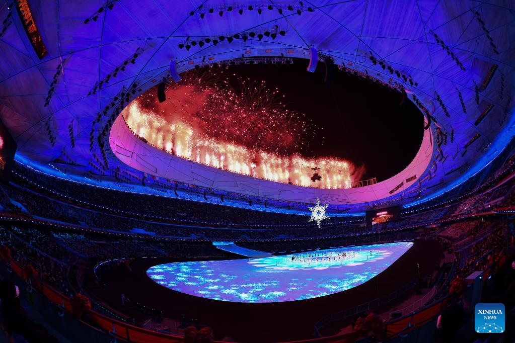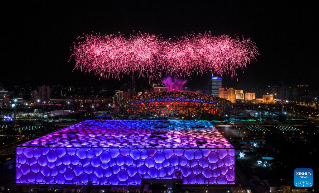 Fireworks illuminate the night sky during the opening ceremony of the Beijing 2022 Paralympic Winter Games at the National Stadium in Beijing, capital of China, March 4, 2022. (Xinhua/Zhang Bowen)