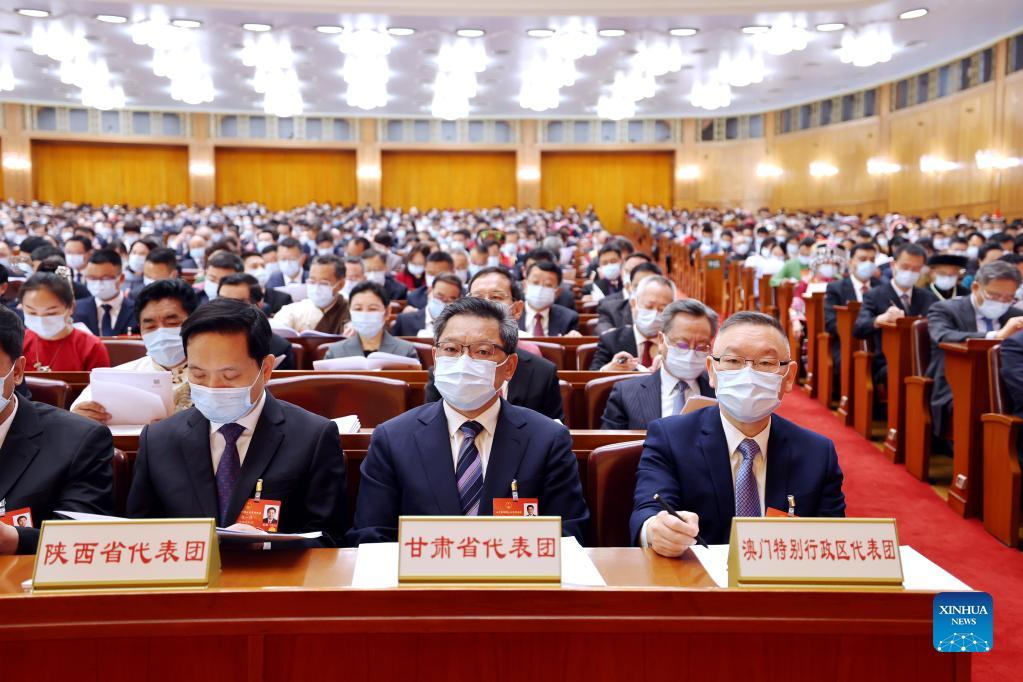 The fifth session of the 13th National People's Congress (NPC) opens at the Great Hall of the People in Beijing, capital of China, March 5, 2022. Leaders of the Communist Party of China and the state Xi Jinping, Li Keqiang, Wang Yang, Wang Huning, Zhao Leji, Han Zheng and Wang Qishan attended the opening meeting of the fifth session of the 13th NPC, and Li Zhanshu presided over the meeting. (Xinhua/Ju Peng)