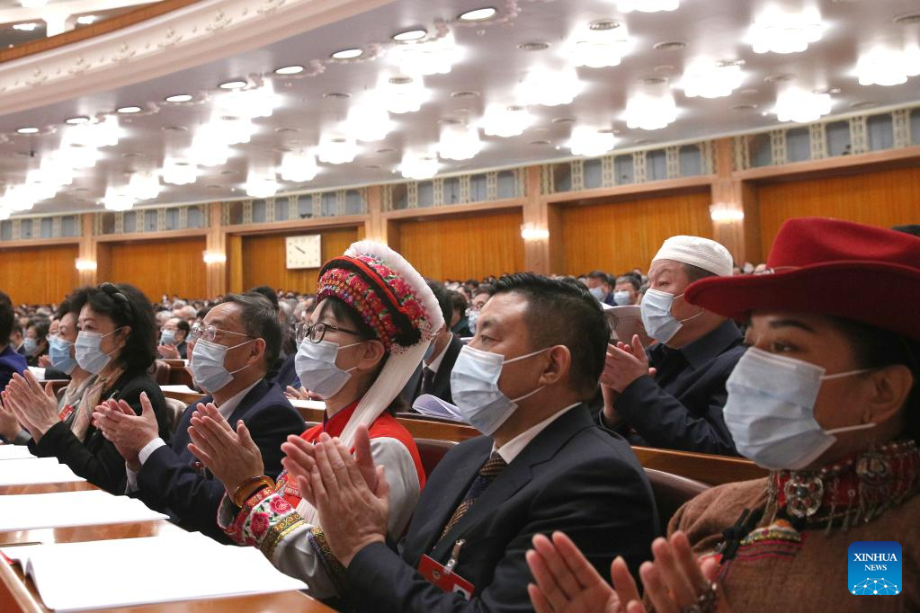 Members of the 13th National Committee of the Chinese People's Political Consultative Conference (CPPCC) attend the second plenary meeting of the fifth session of the 13th CPPCC National Committee at the Great Hall of the People in Beijing, capital of China, March 7, 2022. (Xinhua/Jin Liwang)