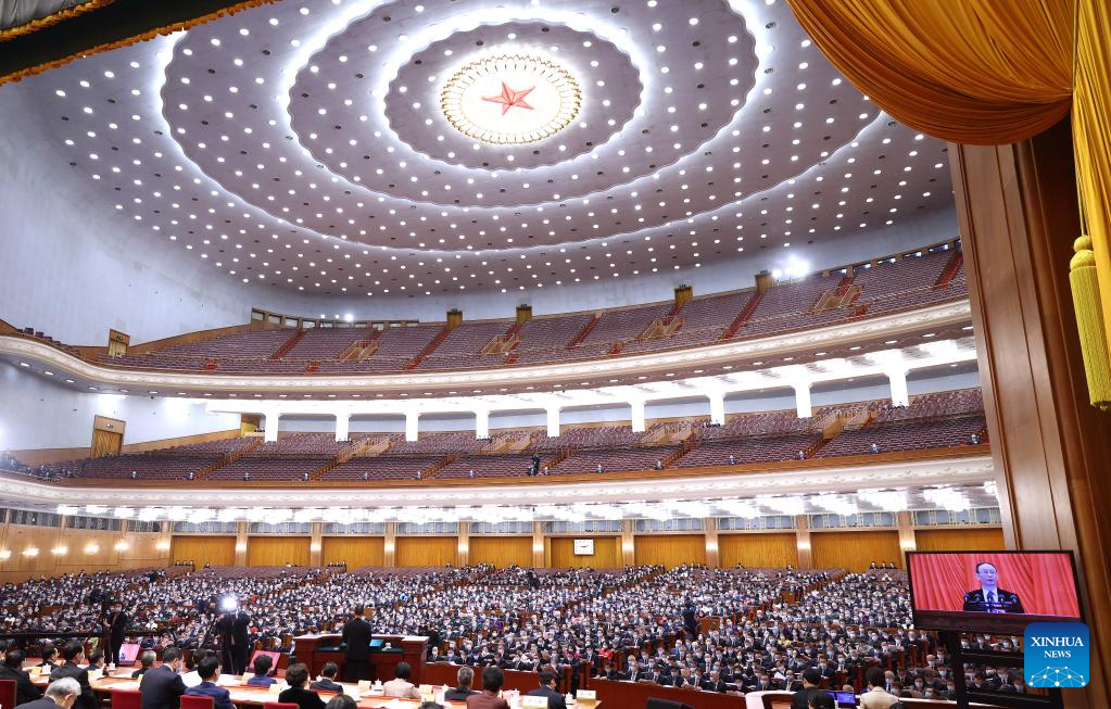 The second plenary meeting of the fifth session of the 13th National Committee of the Chinese People's Political Consultative Conference (CPPCC) is held at the Great Hall of the People in Beijing, capital of China, March 7, 2022. (Xinhua/Yin Gang)
