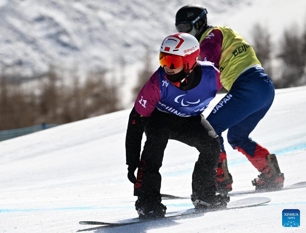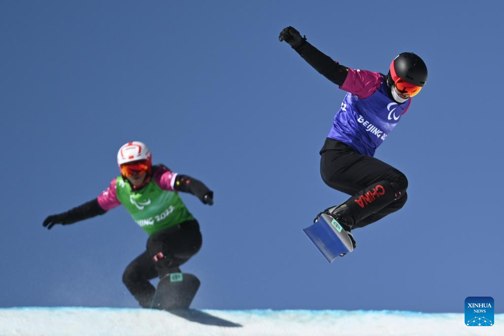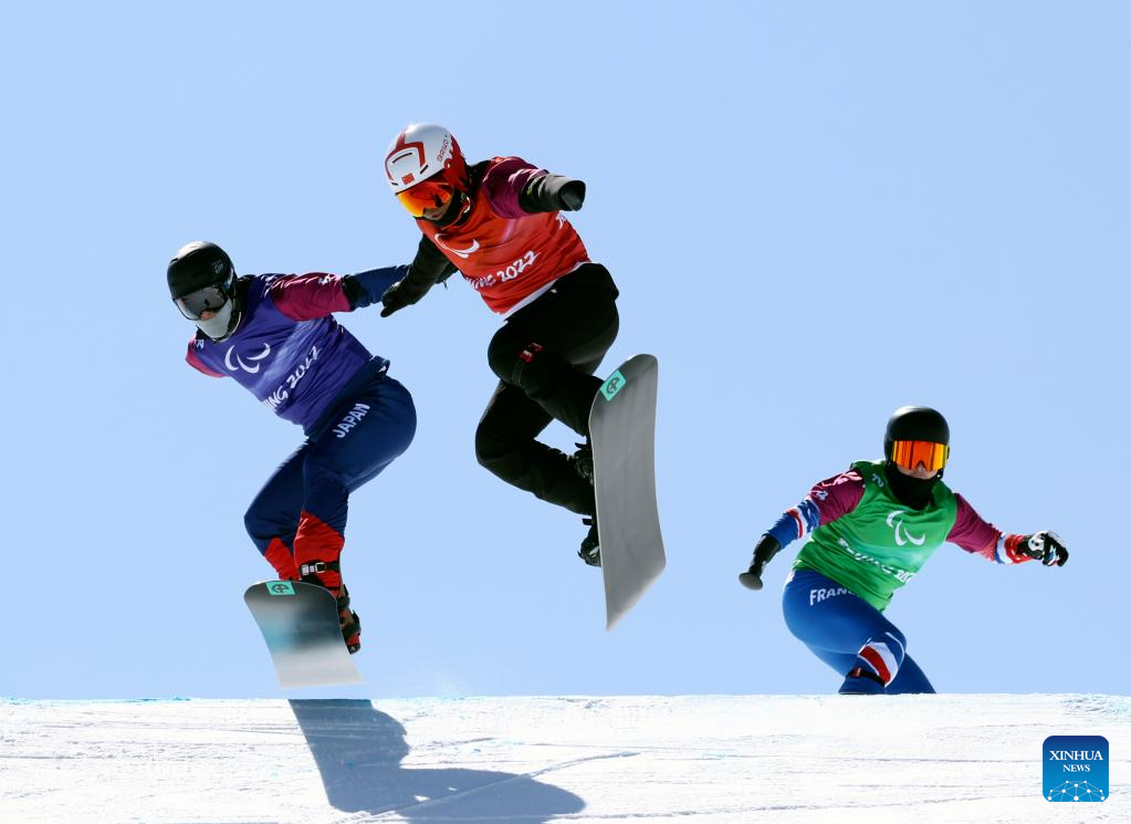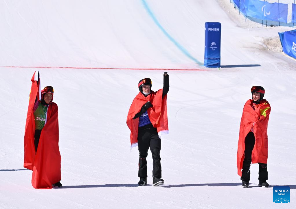 CHONGLI, Zhangjiakou, March 7 (Xinhua) -- Host nation China made a clean sweep of Para snowboard men's cross SB-UL medals at Beijing 2022 here on Monday, with Ji Lijia topping the podium.