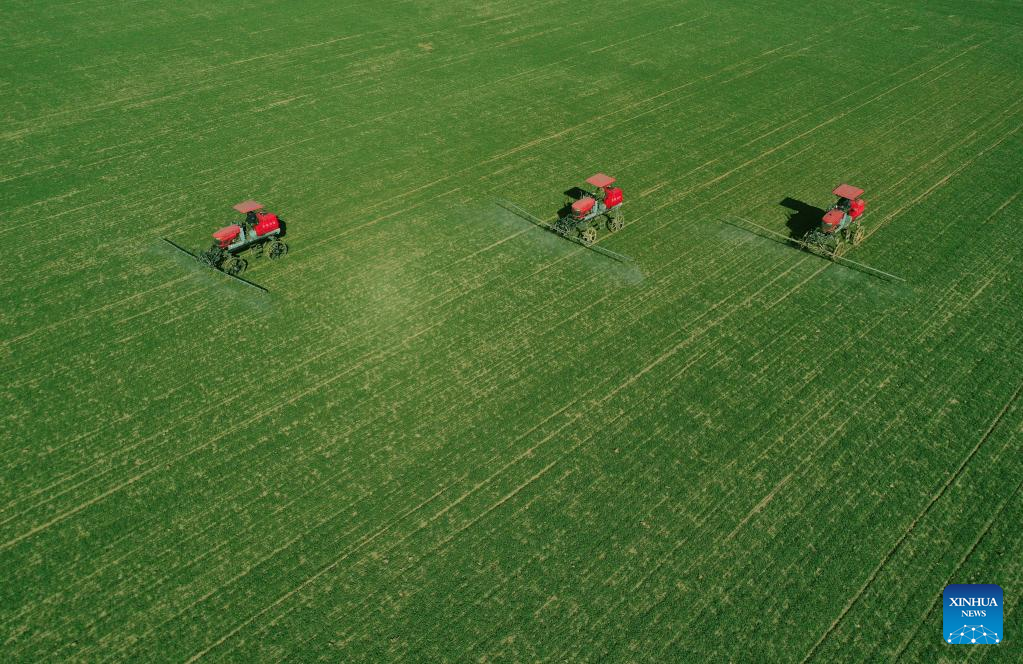 Aerial photo taken on March 7, 2022 shows wheat fields in Yanli Township of Xingtai, north China's Hebei Province. (Xinhua/Zhu Xudong)