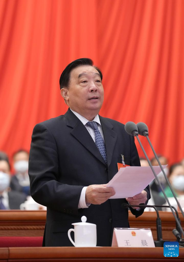 Wang Chen presides over the second plenary meeting of the fifth session of the 13th National People's Congress (NPC) at the Great Hall of the People in Beijing, capital of China, March 8, 2022. (Xinhua/Shen Hong)