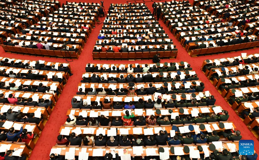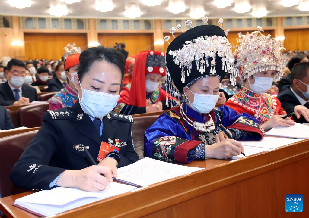 Deputies to the 13th National People's Congress (NPC) attend the second plenary meeting of the fifth session of the 13th NPC at the Great Hall of the People in Beijing, capital of China, March 8, 2022. (Xinhua/Gao Jie)