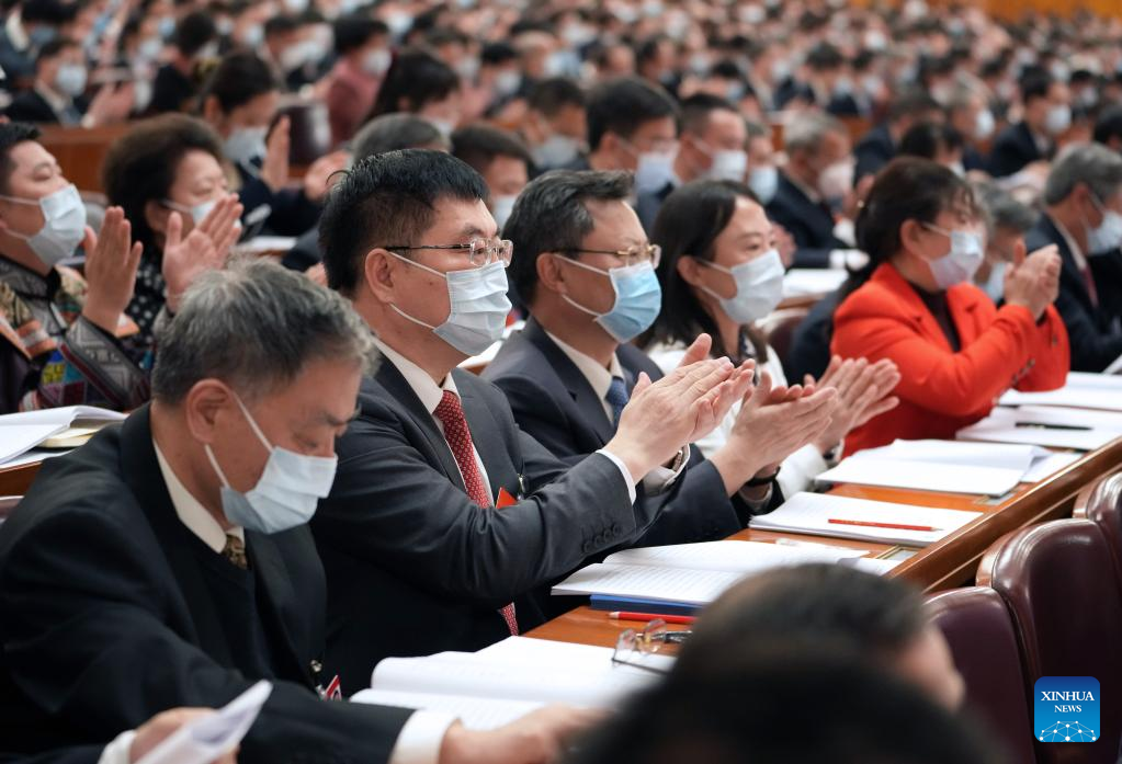 Deputies to the 13th National People's Congress (NPC) attend the second plenary meeting of the fifth session of the 13th NPC at the Great Hall of the People in Beijing, capital of China, March 8, 2022. (Xinhua/Wang Ye)