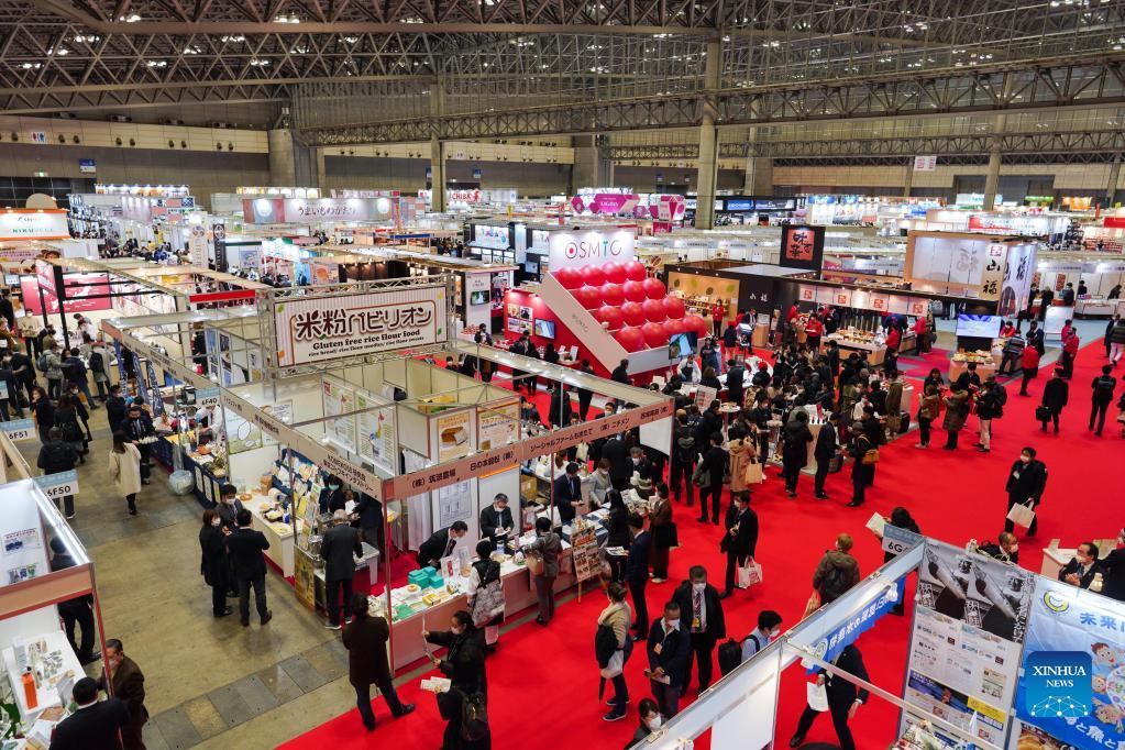 Exhibits are seen during the 47th International Food and Beverage Exhibition at the Makuhari Messe International Exhibition Hall in Chiba, Japan, March 8, 2022. The exhibition is held from March 8 to March 11. Nearly 1,500 companies from 44 countries and regions participated in the exhibition. (Xinhua/Zhang Xiaoyu)