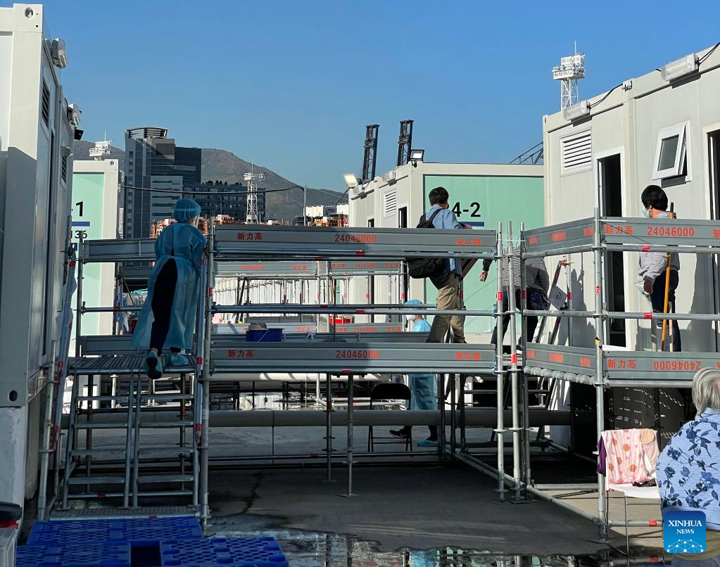 Editor's note: China's Hong Kong Special Administrative Region (HKSAR) has been fighting its worst wave of COVID-19 infections since the pandemic began. A mainland-aided, newly built community isolation facility (CIF) located in Tsing Yi started admitting its first batch of COVID-19 patients in Hong Kong on March 3. The facility, completed within just one week, is capable of accommodating about 3,900 asymptomatic or mildly ill patients.