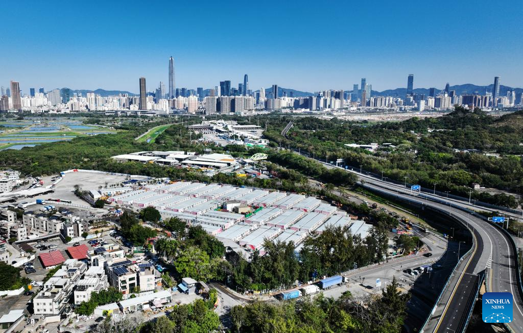 Aerial photo taken on March 8, 2022 shows a community isolation facility (CIF) in San Tin Tsuen Road, Yuen Long, south China's Hong Kong. The second community isolation facility (CIF) in Hong Kong constructed with the support from the mainland will start operation after it was handed over to the Hong Kong Special Administrative Region (HKSAR) government on Wednesday. (Xinhua)