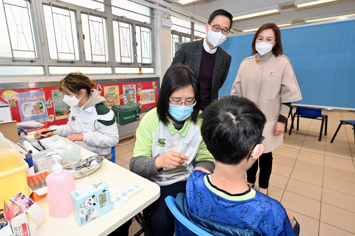 A student at the Shau Kei Wn Government Primary School gets a shot of COVID-19 vaccine. (Photo/new.gov.hk)
