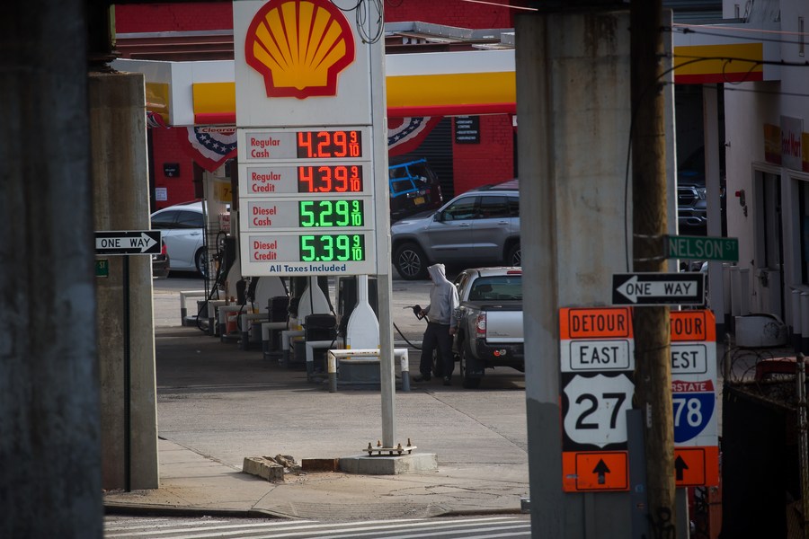 WASHINGTON, March 9 (Xinhua) -- The average American household will pay almost 2,000 and 1,000 U.S. dollars more for gasoline and food respectively in 2022, according to a recent research note by consulting firm Yardeni Research, reported by Fox News on Tuesday.