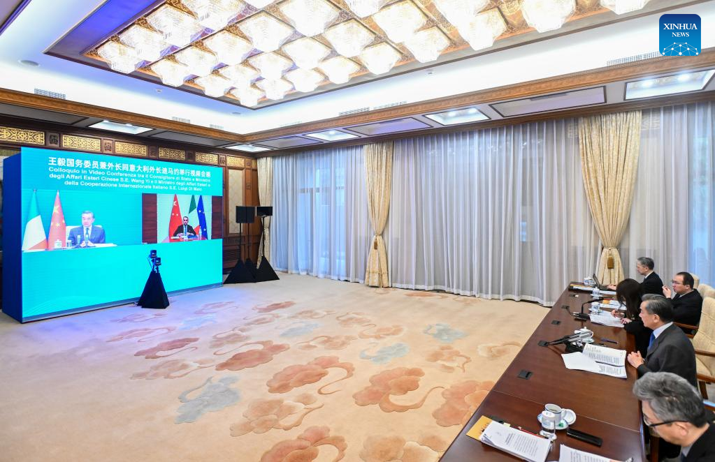 BEIJING, March 10 (Xinhua) -- Chinese State Councilor and Foreign Minister Wang Yi on Thursday exchanged views on the situation in Ukraine respectively with his French and Italian counterparts via video link.