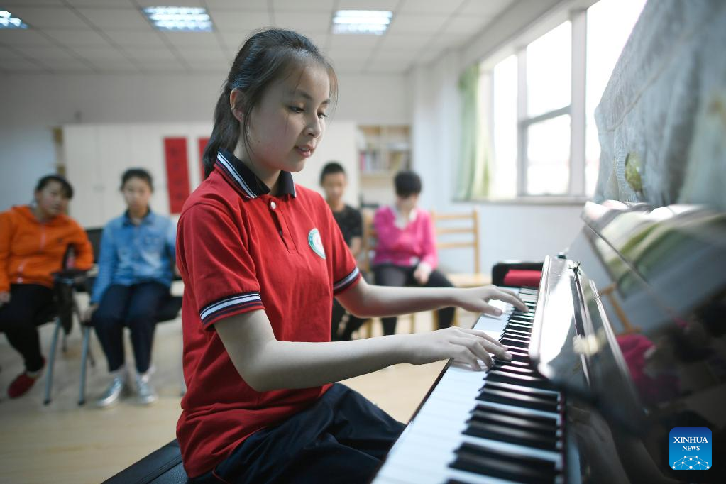 Ma Yifei plays the piano during a music class in Yinchuan, northwest China's Ningxia Hui Autonomous Region, May 16, 2018.