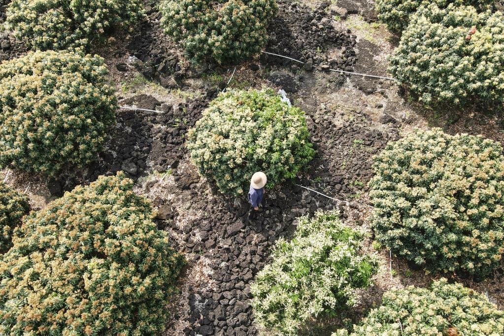 Aerial photo taken on March 15, 2022 shows litchi flowers in Yongxing Township of Haikou City, south China's Hainan Province. (Xinhua/Zhang Liyun)