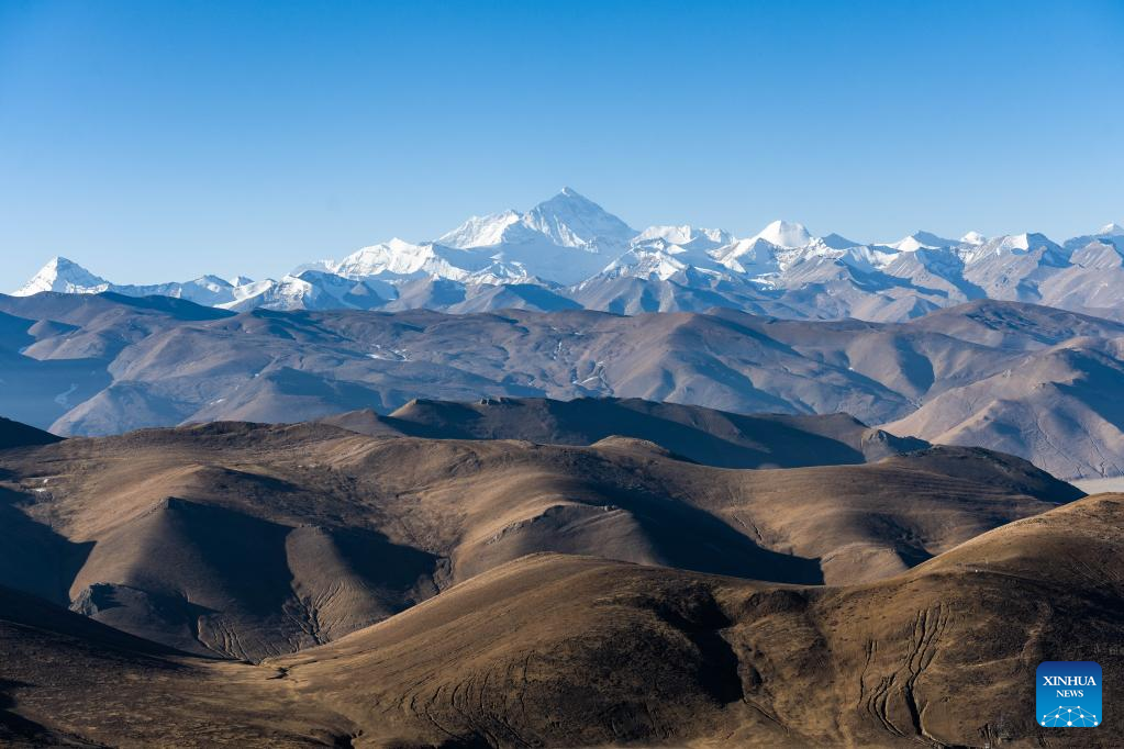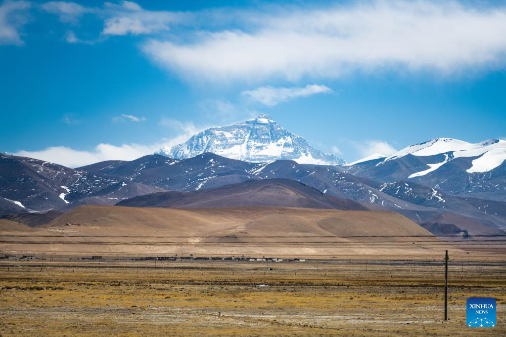 Photo taken on March 15, 2022 shows a view of Mount Qomolangma seen from Xigaze City of southwest China's Tibet Autonomous Region. (Xinhua/Zhou Dixiao)