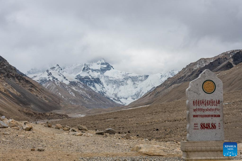 Photo taken on March 14, 2022 shows a view of Mount Qomolangma seen from the Mount Qomolangma base camp in southwest China's Tibet Autonomous Region. (Xinhua/Zhou Dixiao)