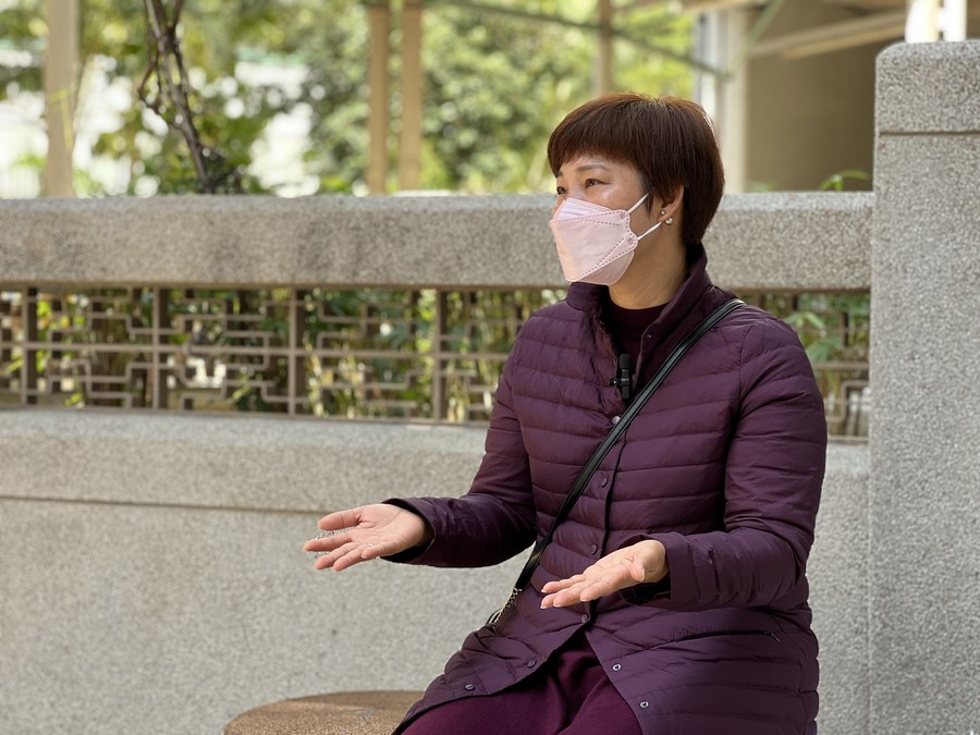 Nursing assistant Katy Chung speaks during an interview with Xinhua in south China's Hong Kong, Feb. 26, 2022. (Xinhua/Zhang Yue)