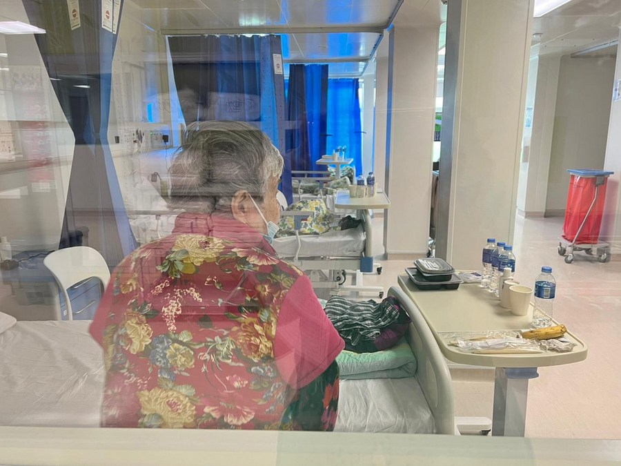 Photo taken on Feb. 26, 2022 shows a patient's ward at the North Lantau Hospital Hong Kong Infection Control Center in Hong Kong, south China. (Xinhua)