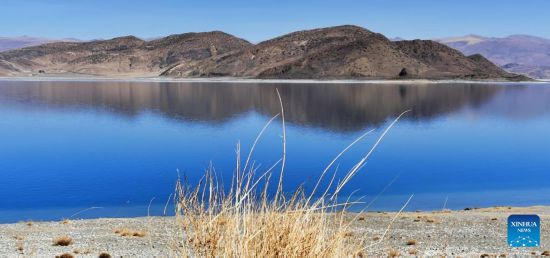 Photo taken with a mobile phone shows the scenery of the Yamzbog Yumco Lake in Shannan, southwest China's Tibet Autonomous Region, March 19, 2022. (Xinhua/Shen Hongbing)