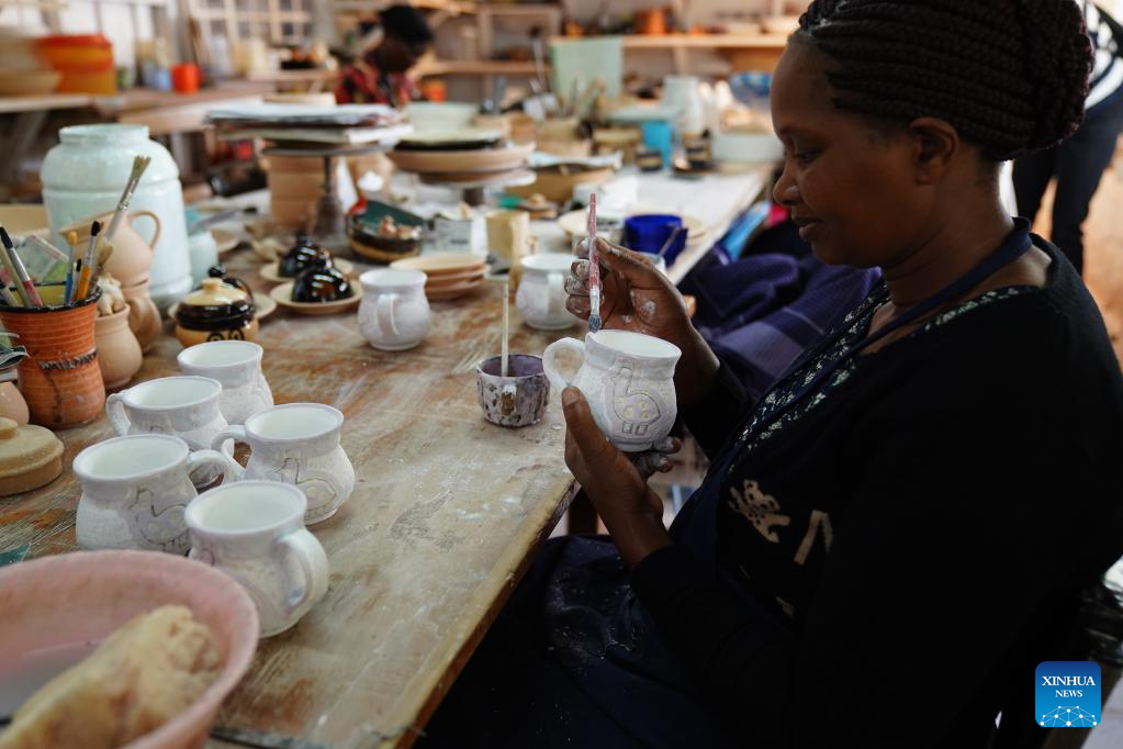 Photo taken on March 21, 2022 shows the Kazuri workshop in Nairobi, Kenya. Kazuri, Swahili name for "small and beautiful," is a famous local brand for hand-made and hand-painted ceramic beads, jewelry and pottery in Kenya. The Kazuri workshop in Kazen has employed over 340 women, mostly single mothers. (Xinhua/Dong Jianghui)