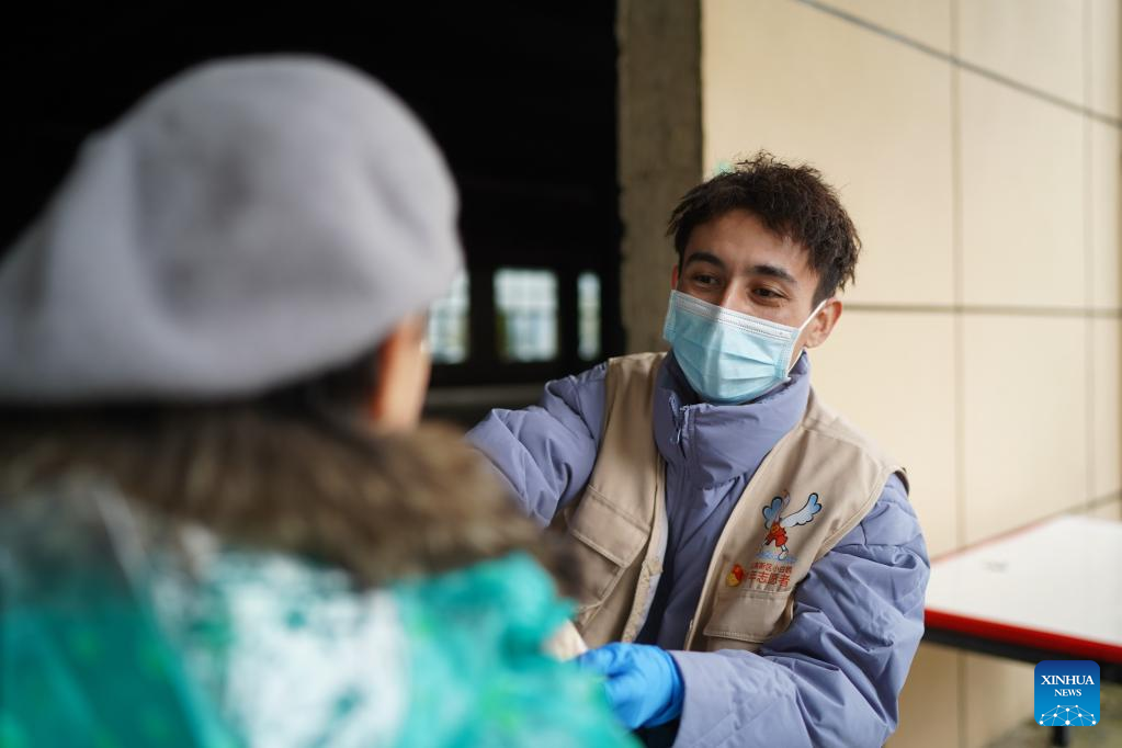 Miradil Mamtawla distributes food to medical workers in Nanchang, east China's Jiangxi Province, March 21, 2022. Miradil Mamtawla is from northwest China's Xinjiang Uygur Autonomous Region. The 29-year-old came to Nanchang in 2013 to attend university and started his own business after graduation. The COVID-19 outbreak in 2020 had a significant impact on his business. At the most difficult time, the local government provided loans and other supportive measures to help his business. After a resurgence of COVID-19 hit Nanchang this year, Miradil and his team joined a volunteer team, providing free meals to frontline essential workers. His team has already delivered over 1,000 naan buns. "The city of Nanchang helped me in the hardest time of my life, and now it's time for me to repay that kindness," he said. (Xinhua/Zhou Mi)