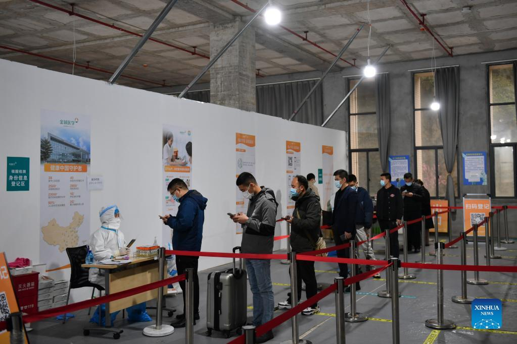 Local residents queue for COVID-19 nucleic acid tests in Changsha, central China's Hunan Province, March 22, 2022. (Xinhua/Chen Zhenhai)