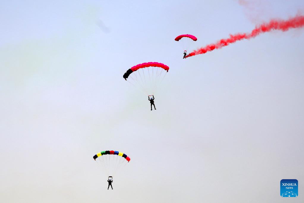 Parachutists perform during the Pakistan Day military parade in Islamabad, capital of Pakistan on March 23, 2022. Pakistan Day, also known as the Pakistan Resolution Day or Republic Day, is celebrated annually on March 23. (Xinhua/Ahmad Kamal)