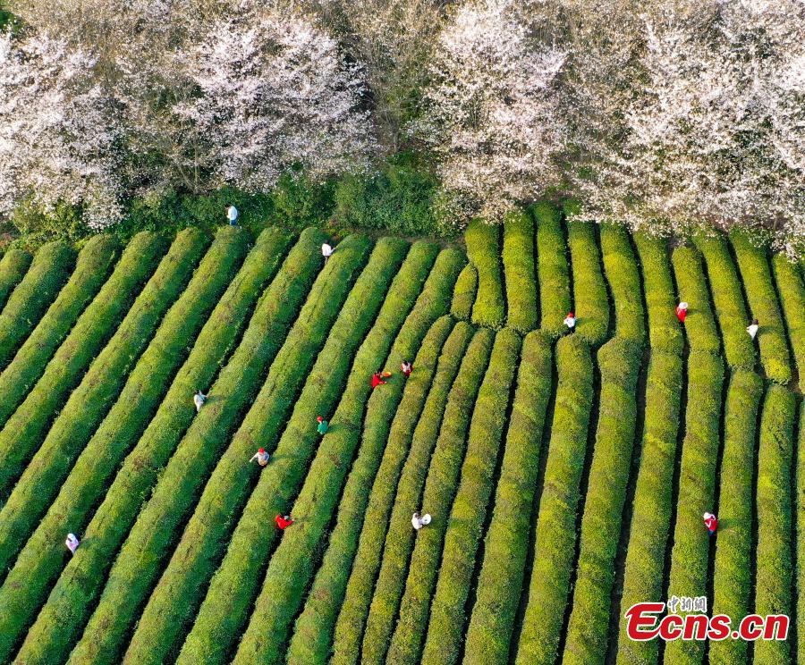 Cherry trees in full blossom beside tea plantation in Anhui (4)