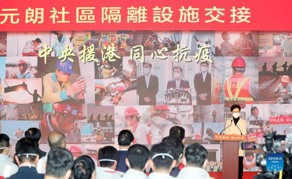 HONG KONG, March 24 (Xinhua) -- The community isolation facility (CIF) in Hong Kong's Yuen Long, constructed with the support from the mainland, was handed over to the Hong Kong Special Administrative Region (HKSAR) government on Thursday, marking the full completion of the first phase of mainland-aided medical facilities in Hong Kong.