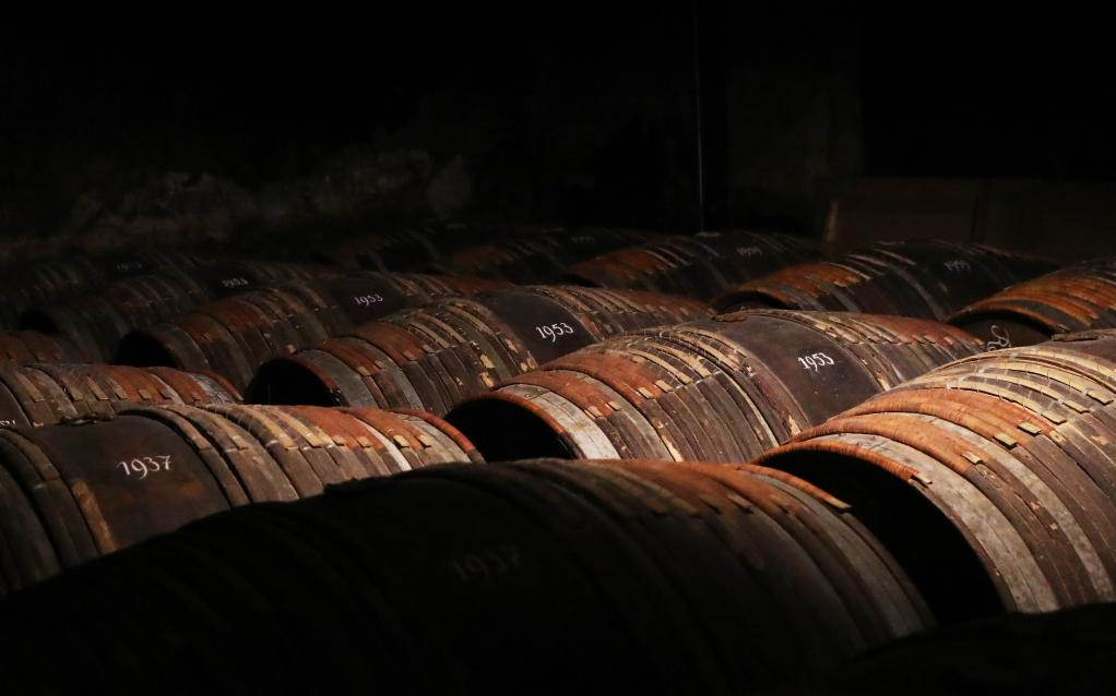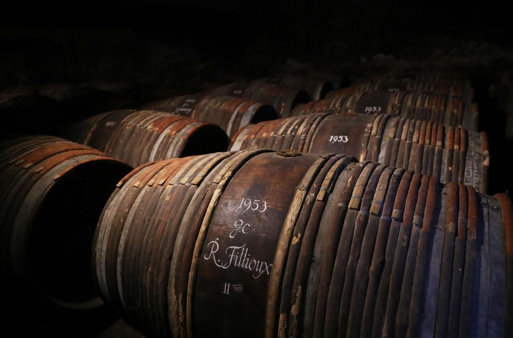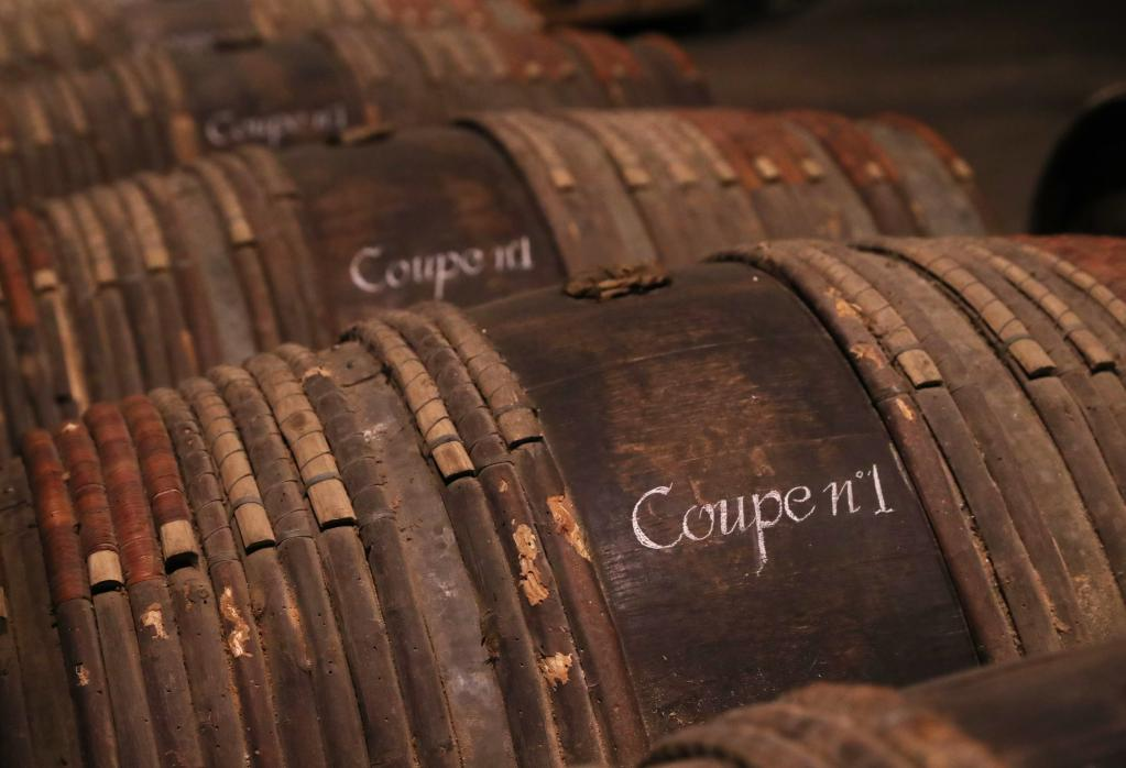 Oak barrels are seen stored in a cellar used for storing rare and old cognac at the Hennessy factory in Cognac, southwestern France, March 22, 2022. Cognac/eau-de-vie de cognac/eau-de-vie des charentes is listed in the China-EU agreement on geographical indications. (Xinhua/Gao Jing)