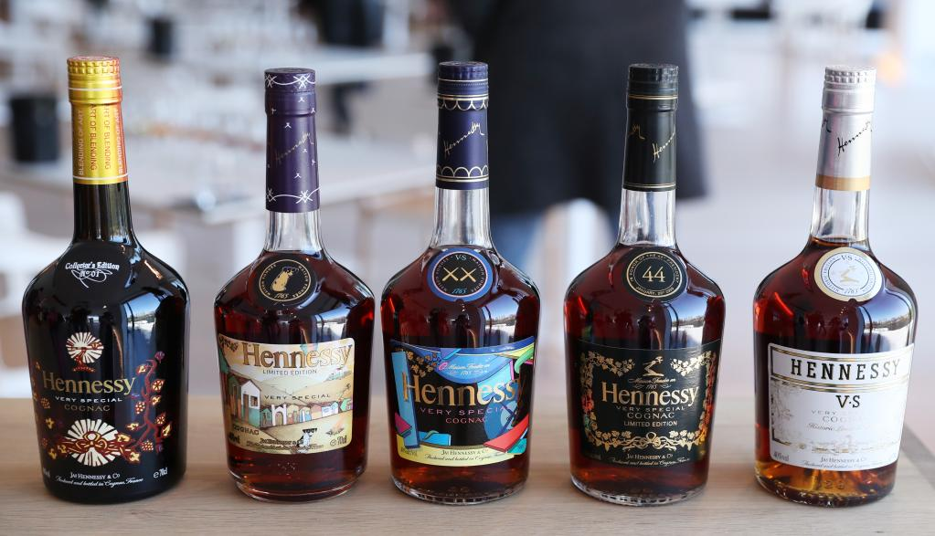 Bottles of Hennessy cognac are pictured in Cognac, southwestern France, March 22, 2022. Cognac/eau-de-vie de cognac/eau-de-vie des charentes is listed in the China-EU agreement on geographical indications. (Xinhua/Gao Jing)
