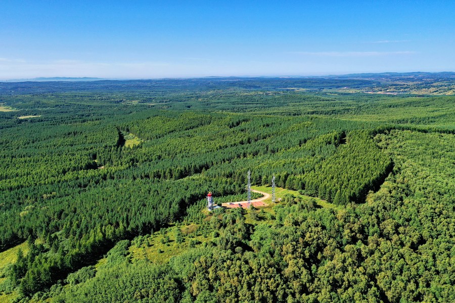 Aerial photo taken on Aug. 23, 2021 shows a view of the Saihanba forest farm in north China's Hebei Province. (Xinhua/Mu Yu)