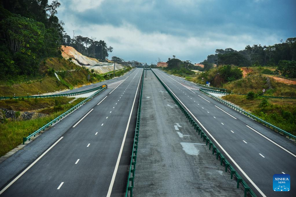 Photo taken on March 15, 2022 shows a view of the highway built by the China Harbour Engineering Company Ltd (CHEC) for the transport of goods from Kribi Deep Seaport in Kribi, Cameroon. (Photo by Kepseu/Xinhua)